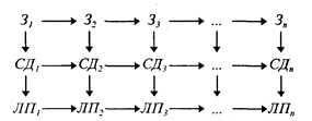 В этом случае усваиваемое знание (31 ) включается сразу в две (или несколько) специфические (СД1 и СД2 ) деятельности, каждая из которых связана с новым логическим приемом мышления (ЛП1 и ЛП2 ). Это легко понять, если вернуться к предыдущему примеру, но вместо двух понятий взять одно: оно может усваиваться и с помощью подведения под понятие, и с помощью сравнения. 3.