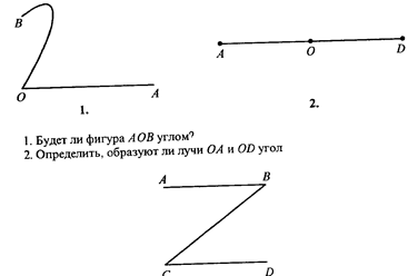 3. Установить есть ли на данном чертеже углы. 4. Поставьте точку О и из нее проведите две кривые линии. Определите, будет ли полученная фигура углом. На этапе внешней речи учащиеся получают задания в речевой форме. Они должны теперь работать не с чертежами, а с описанными в условии задачи объектами. Поскольку в геометрии при решении задач обычно используются чертежи, то ученики нередко ориентируются на них, а не на условие задачи. Для того чтобы научить анализировать словесно данные условия, снять стремление работать с наглядным образом, к задачам можно давать чертежи, не соответствующие условиям задачи. Это помогает школьникам устанавливать меру соответвия между наглядным и словесно заданным объектом, учиться переходить от одной формы к другой. 5. Вот пример такой задачи: «Ученик начертил два луча, исходящие из разных точек. Начертил ли ученик угол?» К задаче дан чертеж, не соответствующий данным условиям: