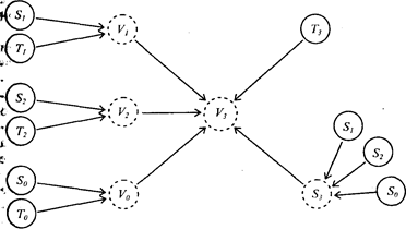 Теперь учащийся должен установить, как можно найти V3 . Он знает, что V3 можно найти двумя путями: через T3 и через S3 или через V0 и частные V1 и V2 . Продолжая по предписанию анализ данных задачи, ученик получает такую схему: