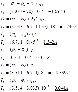 Для внешнего контура рассматриваемой исходной схемы (см. рис.4), потенциалы определяются из соотношений: