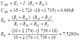 Напряжение холостого хода определяется для правой или левой части внешнего контура.