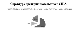 Рис.3. Структура предпринимательства и производства в США Подобный парадокс легко объясним, если мы подробнее познакомимся с достоинствами и недостатками каждого из указанных типов деловых предприятий. Частнопредпринимательская фирма – это фирма, делец которой самостоятельно ведет дела в собственных интересах; управляет ею, получает всю прибыль (остаточный доход) и несет персональную ответственность по всем ее обязательствам (т. е. является субъектом неограниченной ответственности). Собственник классической фирмы является центральной фигурой, с которой владельцы всех остальных ресурсов заключают контракты. Он обладает правом найма и увольнения, т. е. контролирует поведение всех остальных членов команды. Поэтому он получает весь остаточный доход — всю прибыль за вычетом издержек по ведению дела. Наконец, он вправе продать все, чем он обладает, передать все свои права другому лицу. Обычно собственником классической фирмы является владелец наиболее важного (интерспецифического) ресурса. Таким интерспецифическим ресурсом может быть как физический, так и человеческий капитал. Например, в проектно-конструкторских организациях или в рекламном бюро и т. д. роль человеческого капитала чрезвычайно высока, поэтому владельцами фирмы являются талантливые работники. Обычно оборот небольшого магазина не превышает нескольких сот тысяч рублей в месяц, такой бизнес обеспечивает собственнику лишь минимальную заработную плату. В развитых странах с рыночной экономикой такие компании многочисленны, но их доля в общем объеме продаж незначительна (см. рис.3). Для успешной работы большинства мелких предприятий необходимо огромное количество личных трудовых усилий. Так люди, работающие сами на себя, часто не имеют отпусков и зачастую проводят на рабочем месте по 50 – 60 часов в неделю. Но всё же среднее время существования мелких предприятий не превышает года. Тем не менее, некоторые люди желают всегда иметь собственное дело. И их предприятия могут оказаться удачливыми, с оборотом в несколько миллионов рублей. Почему же так популярна такая форма организации бизнеса? Ученые-экономисты [3, 6] выделяют следующие достоинства частнопредпринимательской фирмы: 1) простота организации (учреждения, управления и т. д.); 2) свобода действий (не связанная с необходимостью согласования в принятии решений и т. д.); 3) сильный экономический стимул (получение всей прибыли одним лицом). Среди очевидных недостатков частнопредпринимательской фирмы следует назвать в первую очередь: 1) ограниченность финансовых и материальных ресурсов (связанная как с недостатком средств собственника фирмы, так и с трудностью получения кредитов); 2) отсутствие развитой системы внутренней специализации производственных и управленческих функций (особенно в условиях мелкого и среднего производства, наиболее типичного для данной формы собственности); 3) ненормированный рабочий день предпринимателя, отсутствие отпусков; 4) существование неограниченной ответственности (когда собственник в случае банкротства рискует не только капиталом, вложенным в дело, но и всей своей личной собственностью). Создать эффективное дело нередко под силу одному человеку. Однако зачастую для организации бизнеса требуется взаимодействие нескольких профессионалов. Любые двое или более людей могут