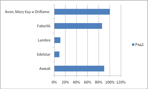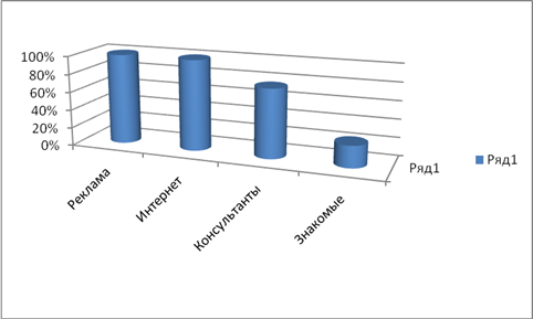 Рисунок 6 – известность компаний сетевого маркетинга. На вопрос – из каких источников Вы узнаете информацию о сетевом маркетинге – респонденты отметили такие варианты ответов: из рекламы и Internet – 100%, от консультантов – 76%, от знакомых 24%. Результаты отражены в виде диаграммы (рис. 7).