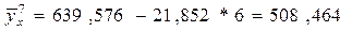 Отже, рівняння має вигляд: а = 639,576 – постійна величина, яка непов’язана зі зміною фактора Х. в = -21,852 – показує, що зі збільшенням об’єму випуску продукції ціна зменшується на 21,852. Підставимо в рівняння регресії відповідні значення х Визначаємо теоретичне значення результативного показника у.
