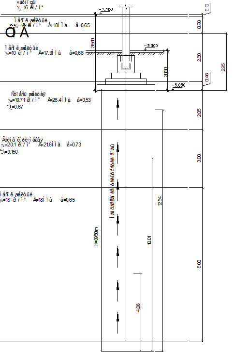 Нагрузка от массы фундамента: Нагрузка от массы колоны подвала: Нагрузка от массы грунта: Принимаем Проверка свайного фундамента по первой группе предельных состояний Законструировав ростверк, выполняется проверка свайного фундамента по несущей способности по условию: Расчётная характеристика на сваю: При проверке условия