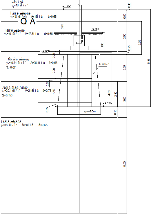 Nсв11 =4,5х0,23х10х9=93,15кН – Нагрузка от массы сваи Усреднённый удельный вес грунта выше подошвы условного фундамента: Вес грунта в объёме условного фундамента: