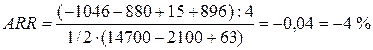 3. Коэффициент эффективности инвестиций ARR представляет собой бухгалтерскую норму прибыли и рассчитывается делением средней величины чистой прибыли на среднегодовую величину инвестиционных затрат: