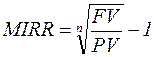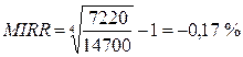 В нашем случае IRR < WACC, т.е. проект следует отклонить. 5.Модифицированная внутренняя норма рентабельности MIRR