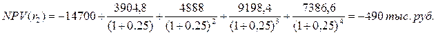 NPV = -8382,9тыс. руб. < 0.Проект следует отклонить, т.к. он убыточен 2. Индекс рентабельности инвестиций PI
