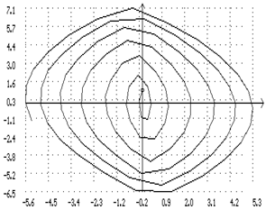 Рисунок 1- Структурная схема заданной САУ Исходные данные: K1=10, T1=1, K=5, T2=0,01, C=10 Начальное условие: X4 (0)=1 Погрешность интегрирования по методу Фельдберга установить равной 0,001, конечное время интегрирования 2. Построить фазовую траекторию, т.е. график выходного сигнала одного блока от выходного сигнала другого блока. Фазовую траекторию получить для двух значений начальных условий: 1. X4 (0)=1 2. X4 (0)=20 Фазовая траектория для схемы с идеальным двухпозиционным реле представлена на рисунках 2, 3. Фазовая траектория для схемы с двухпозиционным реле с зоной нечувствительности представлена на рисунках 4, 5.