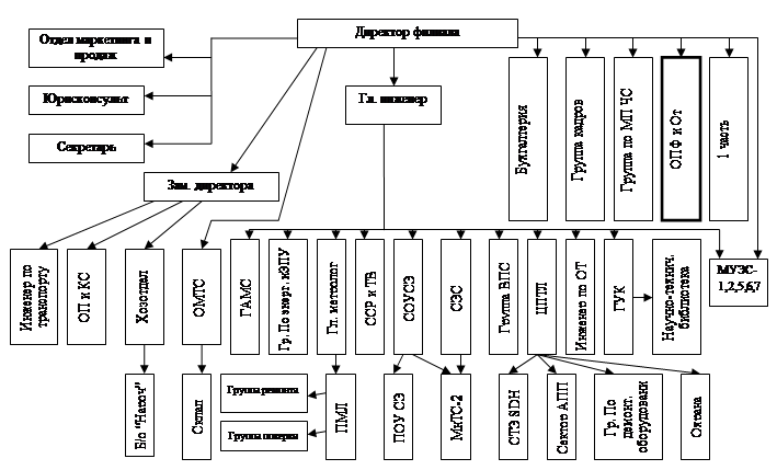 | БЕЛОРУССКИЙ ГОСУДАРСТВЕННЫЙ УНИВЕРСИТЕТ ИНФОРМАТИКИ И РАДИОЭЛЕКТРОНИКИ Кафедра менеджмента РЕФЕРАТ на тему: «ОРГАНИЗАЦИОННО-УПРАВЛЕНЧЕСКАЯ СТРУКТУРА ФИЛИАЛА «МЕЖДУГОРОДНАЯ СВЯЗЬ» РУП «БЕЛТЕЛЕКОМ»» Минск, 2009 Краткая характеристика филиала «Междугородная связь» РУП «Белтелеком»Филиал "Междугородная связь" РУП «Белтелеком» является обособленным подразделением, входящим в состав РУП "Белтелеком" Министерства связи и информатизации Республики Беларусь. Адрес: инд. 220079 город Минск, улица Севастопольская, 121, телефон – 285-70-48, факс – 269-20-03. Филиал "Междугородная связь" было организовано 27 ноября 1948 г., называлось УКМ-4 - управление технической эксплуатации кабельной телефонно-телеграфной магистрали и подчинялось непосредственно Министерству связи СССР. В своей деятельности УКМ-4 (в настоящий момент филиал "Междугородная связь") добивалось высоких результатов как за счет ввода новых объектов связи в кратчайшие сроки, реконструкции существующих, внедрения новых высокотехнологичных процессов, так и за счет высокого качества обслуживания эксплуатируемых средств связи и предоставления услуг на уровне требований потребителей. Предприятие семь раз награждалось переходящим Красным Знаменем Министерства связи СССР, 13 февраля 1976 г. было награждено орденом "Знак Почета". Филиал "Междугородная связь" осуществляет эксплуатацию кабельных, радиорелейных линий связи, маломощных телевизионных и УКВ-ЧМ передатчиков на территории Республики Беларусь, является заказчиком по строительству междугородных линий связи на территории нашей страны. В 1996 г. филиал "Междугородная связь" принял в эксплуатацию синхронную цифровую сеть связи, работающую по волоконно-оптическим линиям связи, построенную в 1995 -1996 гг., которая позволила обеспечить организацию цифровых каналов связи между столицей Республики Беларусь и областными центрами с выходом на международную сеть через сопредельные страны: Украину, Польшу, Литву, Латвию, Россию. В настоящее время на эксплуатационно-техническом обслуживании филиала "Междугородная связь" находится более 12 тысяч километров междугородных линий связи, в том числе более 4,0 тысяч километров волоконно-оптических линий связи. По радиорелейным линиям филиал "Междугородная связь" распространяются все телевизионные программы, вещание которых осуществляется на территории Республики Беларусь. Деятельность филиала "Междугородная связь" осуществляется на всей территории Республики Беларусь, с этой целью созданы структурные подразделения филиала "Междугородная связь". Это междугородные узлы электросвязи - МУЭС -1, 2, 5, 6, 7, расположенные в городах Минск, Гомель, Витебск, Барановичи, Пинск, имеющие в своем составе линейно-кабельные и линейно-технические цеха, расположенные в районных центрах и населенных пунктах Республики Беларусь. Вся деятельность коллектива филиала "Междугородная связь" направлена на создание и эксплуатацию сети международной, междугородной связи высокой технологии и качества и осуществляется на основании лицензий Министерства связи Республики Беларусь № 02140/0175283 от 20.08.2007 г. на проектирование, строительство и эксплуатацию сетей, систем и сооружений связи, предоставление услуг связи, на строительство, эксплуатацию радиорелейных линий связи, теле- и радиовещательных передатчиков и предостав