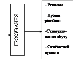 Рисунок 1.1 - Місія фірми в структурі етапів стратегічного планування діяльності фірми [16] Із схеми рисунка 1.1 видно, що головним стратегічним плановим рішенням являється вибір цілей для підприємства - місії та конкретних цілей, що забезпечують їх реалізацію. Оскільки любе підприємство - це відкрита система і існує завдяки тому, що задовольняє якусь потребу своїх споживачів, клієнтів, то й місія його повинна відшукуватись в навколишньому середовищі, а не всередині підприємства. Отже, прибуток не може бути місією підприємства, бо він цілком внутрішня проблема, хоч і дуже суттєва. Категорія „стратегічний господарський підрозділ” (СГП) –характеризуться таким параметрами [16, c.76]: - певний вид продукції, який включає товари або послуги; - специфічні потреби, які мають бути задоволені; - певна група споживачів; - конкурентні переваги фірми; Порівнюючи складові елементи СГП та місії фірми, можна помітити їхню схожість. Різниця між цими двома категоріями полягає в тому, що СГП – це первинна зона стратегічного планування фірми, а місія – узагальню вальна, об’єднувальна на рівні фірми категорія, яка передбачає визначення певних пріоритетів серед СГП. Сукупність усіх СГП у межах фірми становить „портфель бізнесу фірми”, завдання стратегічного маркетингу щодо управління портфелем: - зміцнювати становище стійких прибуткових СГП; - розвивати, інвестувати перспективні СГП; - виключати з діяльності неприбуткові, безперспективні СГП; - формувати нові СГП. Маркетингова ціль встановлюється після формування місії фірми та визначення впливу маркетингового середовища. Маркетингові цілі мають:: - ієрархічність (підпорядкованість); - кількісну визначеність; - реальність; - взаємоузгодженість (сумісність); - гнучкість. Ринкова частка фірми – це питома вага товарів фірми в загальній місткості даного ринку збуту. Відносна ринкова частка фірми – визначається як відношення ринкової частки фірми до ринкової частки найсильнішого ринкового конкурента. 1.2 Сутність маркетингових стратегій Маркетинг у перекладі з англійського означає “діяльність, зв'язану з ринком”. Сутність маркетингу можна виразити як інтеграцію зусиль всіх учасників ринку для формування і забезпечення попиту на взаємовигідній основі. Маркетинг являє собою комплексний, системний підхід до рішення проблем ринку й охоплює всі стадії руху товару: вивчення потреб і попиту, внутрішнього і зовнішнього середовища підприємства, розробку продукції і програм її виробництва, установлення цін, рекламу, надання різного роду послуг, зв'язаних із продажем і споживанням, організацію післяпродажного обслуговування й утилізації виробів, що вийшли з уживання [44, c.35]. Маркетинг як методологія ринкової діяльності є для промислових підприємств у визначеному змісті філософією виробництва, що дозволяє цілком, починаючи від науково-дослідних і проектно-конструкторських розробок аж до збуту і сервісу, підкоряти роботу всіх підрозділів підприємства постійно мінливим умовам і вимогам ринку. Маркетинг на підприємстві – це система поглядів і практичних дій, зв'язаних з вивченням потреб, можливостей виробництва й обміну для їхнього забезпечення з мінімальним використанням усіх видів ресурсів при досягненні найбільшого споживчого ефекту. Головне в маркетингу — цільова орієнтація і комплексність, т