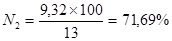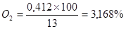 Определяем процентный состав продуктов горения: