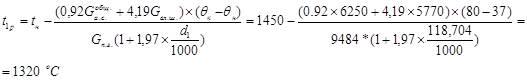 Определяем коэффициент избытка воздуха из уравнения теплового баланса процесса горения газа