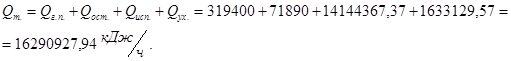 Суммарный тепловой поток в окружающую среду: Q* =Q1 +Q2 +Q3 =3819+17910+6781=28510 Вт. или