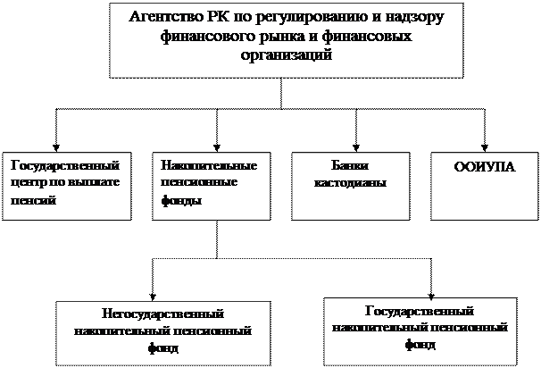 1.2 Понятие и создание пенсионных фондов и ООИУПА В Республике Казахстан В результате реформирования пенсионной системы в Республике Казахстан были созданы так называемые накопительные пенсионные фонды, формирующие свои активы за счет привлечения средств населения. Новая система пенсионного обеспечения в соответствии с Законом «О пенсионном обеспечении в Республике Казахстан» от 20 июня 1997 г. гарантирует четкую ее работу и самое главное - сохранность пенсионных накоплений[1; c. 56]. В начале 1999 г. Постановлением Правительства РК был изменен порядок уплаты обязательных пенсионных взносов. Механизм перечисления при этом сохранился. Однако, обязательные пенсионные взносы в размере 10% удерживаются из дохода работника, а не уплачиваются за счет работодателя, как было ранее. Именно этот порядок является изначально задуманным и зафиксированным в Законе, поскольку так можно закрепить право собственности на пенсионные накопления. Кроме того, по каждому договору оформляется учетная книжка вкладчика. Одной из гарантий выступает также то, что работодатель не может разорвать пенсионный договор без согласия работника. Накопительный пенсионный фонд - это юридическое лицо, осуществляющее деятельность по привлечению пенсионных взносов и пенсионным выплатам, а также по инвестиционному управлению пенсионными активами в порядке, установленном законодательством РК. Накопительные пенсионные фонды аккумулируют обязательные взносы вкладчиков и размещают их в различного рода ценные бумаги, формируя тем самым инвестиционный портфель фонда. Они делятся на государственный накопительный пенсионный фонд и негосударственные накопительные пенсионные фонды. Государственный накопительный пенсионный фонд представляет собой юридическое лицо, учредителем которого является государство, производящее сбор обязательных пенсионных взносов вкладчиков и пенсионные выплаты получателям, а также осуществляющее деятельность по формированию пенсионных активов и инвестирующее их в государственные ценные бумаги, депозиты государственных банков, ценные бумаги международных финансовых организаций. Негосударственный накопительный пенсионный фонд.- это юридическое лицо, совершающее сбор обязательных и добровольных пенсионных взносов вкладчиков и пенсионные выплаты получателям, а также деятельность по формированию пенсионных активов и их инвестирование. Помимо обязательных фонды могут привлекать и добровольные пенсионные взносы, вносимые вкладчиками по своей инициативе в порядке и размерах, определяемых законодательством и пенсионным договором. Пенсионные активы предназначаются для обеспечения и осуществления пенсионных выплат из НПФ. В результате инвестирования пенсионных активов фонды получают инвестиционный доход. Кроме вышеуказанных видов можно также выделить открытые и корпоративные НПФ. Открытые НПФ принимают пенсионные взносы от вкладчиков независимо от места работы и места жительства. Их учредителями и акционерами могут быть юридические и физические лица, как резиденты, так и нерезиденты. Открытый НПФ с участием нepeзидента РК - это пенсионный фонд, более 25% голосующих акций которого находятся в собственности или управлении[5; c. 66]: - нерезидента РК; - юридического лица-резидента РК, более 50% акций которого находятся в собствен