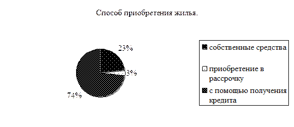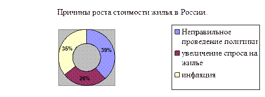 Здесь мнения разделились практически поровну. Каждый из этих факторов существенно влияет на стоимость жилья и нельзя сказать, что только один фактор является причиной роста стоимости жилья. По итогам проведенного анкетирования можно сделать следующий вывод: полученные результаты указывают на то, что среднеобеспеченный российский гражданин не в силах приобрести жилье за собственные средства. Следовательно, пока в России жилье для населения недоступно. Хотя сейчас большое распространение при покупке жилья играет приобретение его в кредит. Это позволяет людям с небольшим доходом обзавестись собственным жильем или сменить его на наиболее комфортное.