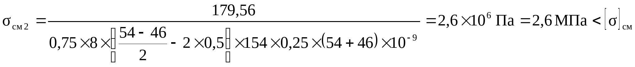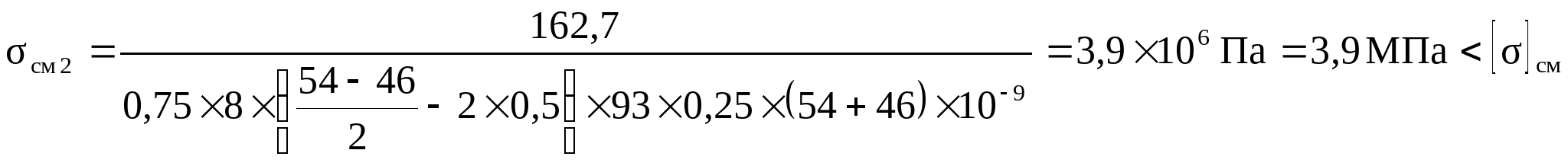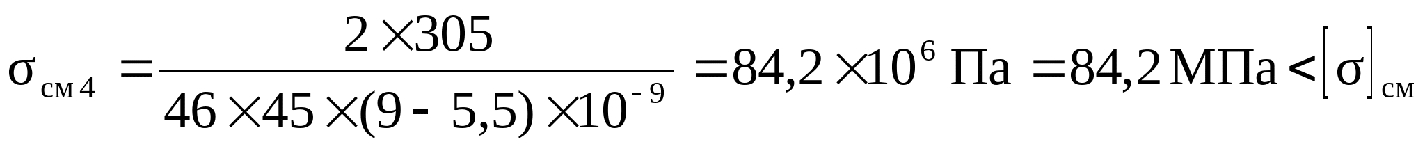 f = 0,5 мм по ГОСТ 1139-80 .Проверку шлицевого соединения производим по формуле (6.3) :