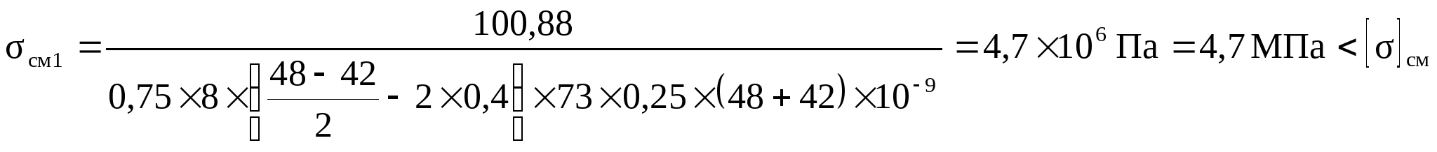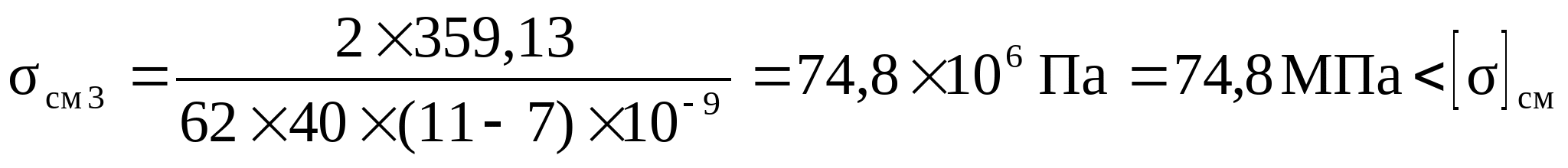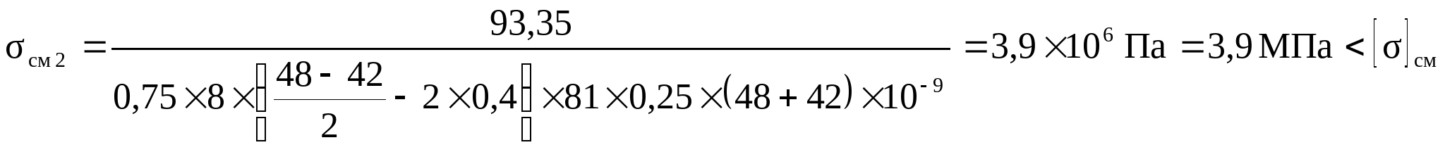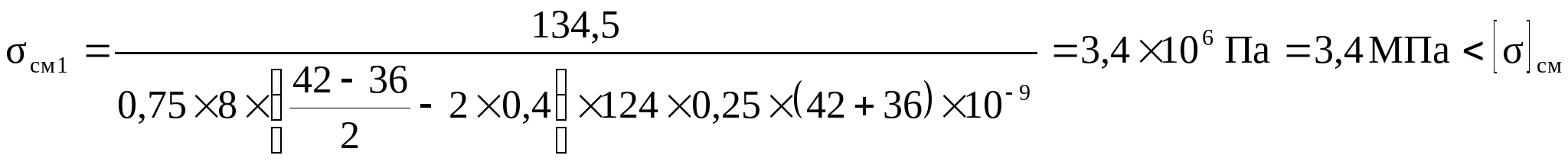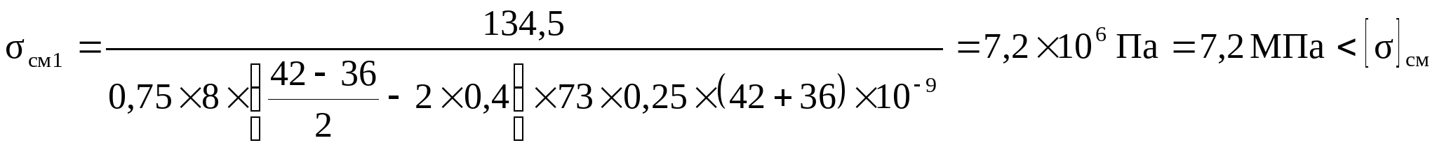 f = 0,4 мм по ГОСТ 1139-80 .Проверку шлицевого соединения производим по формуле (6.3) :