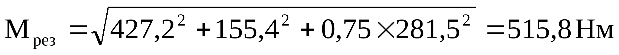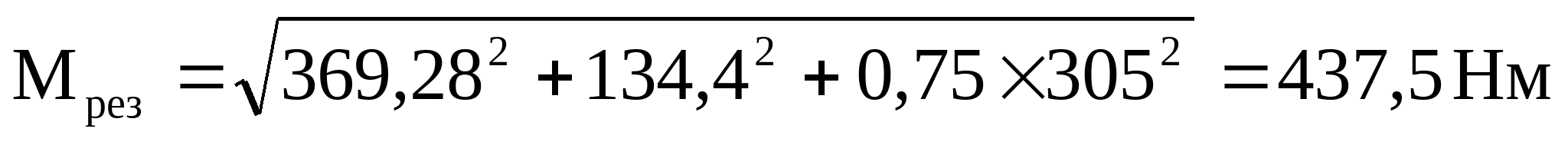 4 Динамический расчет коробки скоростейКрутящий момент двигателя: где Крутящие моменты на валах рассчитываем по следующим формулам: Крутящий момент на первом валу по формуле (4.2): Крутящий момент на втором валу по формуле (4.3): Крутящий момент на третьем валу по формуле (4.4): Крутящий момент на четвёртом валу по формуле (4.5): 4.1 Ориентировочный расчет валов Предварительный расчет проводим на кручение по допускаемым напряжениям: где Диаметр первого вала по формуле (4.6): Диаметр второго вала по формуле (4.6): Диаметр четвёртого вала по формуле (4.6): 4.2 Уточненный расчет валов Уточнённый расчет проводим для наиболее нагруженного вала (с наибольшим крутящим моментом). Выбираем колесо с наименьшим диаметром на этом валу и для него строим эпюры моментов, которые возникают при вращении. Окружное усилие, возникающее в зацеплении: где Для четвертого вала, на котором Радиальное усилие: где