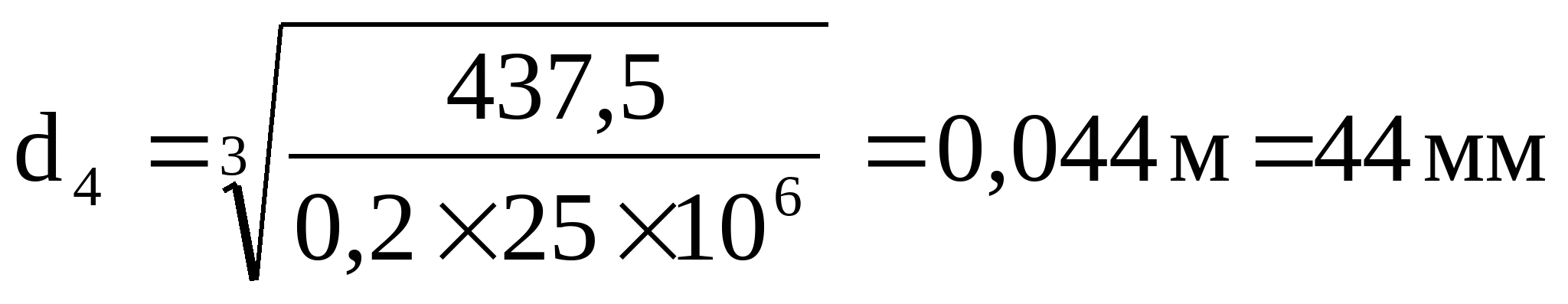 Диаметр четвертого вала по формуле (4.6) с учетом