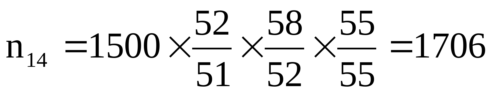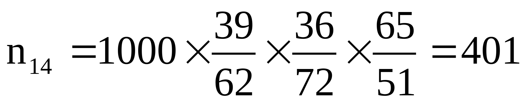 вращения каждого вала. Структурная сетка представлена на рисунке 1, график чисел оборотов на рисунке 2. IV 1 2 3 4 5 6 7 8 9 10 11 12 13 14 15 16 Рисунок 1- Структурная сетка 3Ч2Ч3 i3 i2 i9 i7 IV nдв Рисунок 2 –График чисел оборотовПо структурной сетке определяем значения передаточных отношений: Определяем числа зубьев в каждом зацеплении по значениям передаточных отношений и сводим в таблицу 1. Таблица 1-Числа зубьев в каждом зацеплении