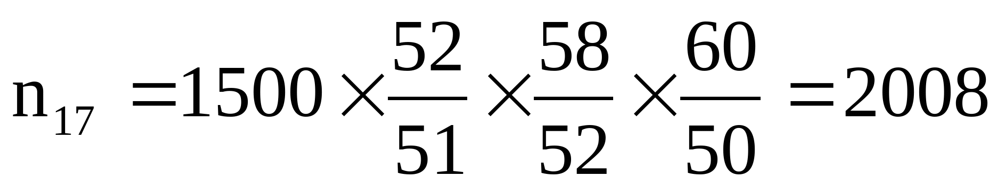 вращения каждого вала. Структурная сетка представлена на рисунке 1, график чисел оборотов на рисунке 2. IV 1 2 3 4 5 6 7 8 9 10 11 12 13 14 15 16 17 18 Рисунок 1- Структурная сетка 2Ч3Ч4 i3 i1 i2 i2 i5 i4 i9 i6 i8 i9 i7 IV nдв Рисунок 2 –График чисел оборотовПо структурной сетке определяем значения передаточных отношений: Определяем числа зубьев в каждом зацеплении по значениям передаточных отношений и сводим в таблицу 1. Таблица 1-Числа зубьев в каждом зацеплении