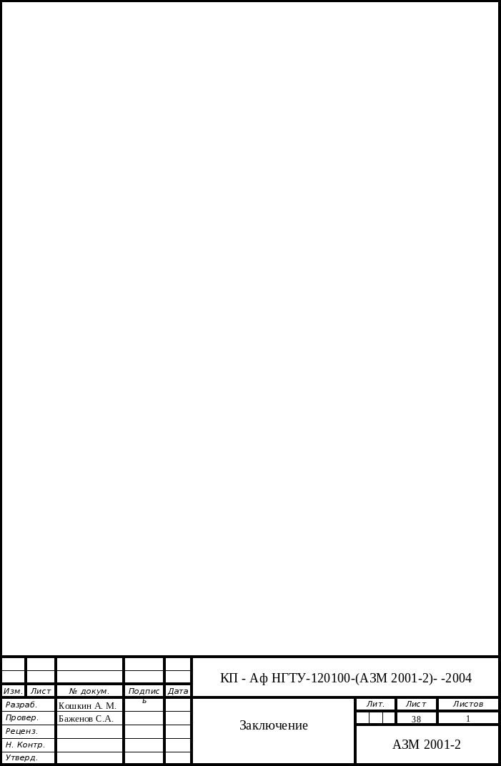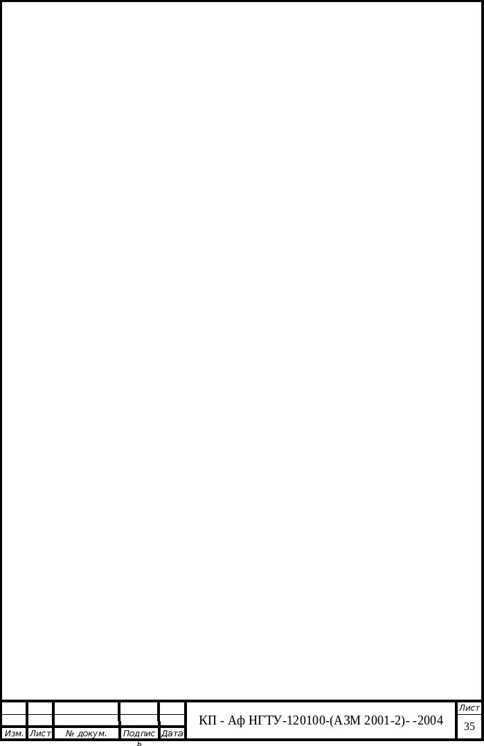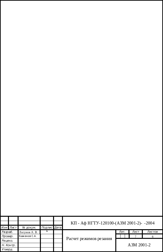 1 Расчет режимов резания и выбор электродвигателяСкорость резания при фрезеровании где где НВ -параметр, характеризующий обрабатываемый материал, НВ = 150; nV - показатель степени, nV = 1,25; По заданию Bmax = 350 мм. Bmin = (0,125ч0,25) Bmax = 43,75ч87,5 мм. Принимаем Bmin = 80 мм. При фрезеровании ковкого чугуна, марки КЧ35-10, принимаем глубину резания и подачу: при Bmax = 350 мм t = 4 мм, s = 0,3 мм/зуб; при Bmin = 80 мм t = 2 мм, s = 0,5 мм/зуб. Частота вращения фрезы: Сила резания при обработки заготовки определяется: где НВ -параметр, характеризующий обрабатываемый материал, НВ = 150 МПа; n - показатель степени, n = 1; Мощность при резании Для первого режима резания при ширине заготовки y = 0,32; u = 0,22; p = 0; q = 0,22: Частоту вращения фрезы вычисляем по формуле (1.4): Силу резания вычисляем по формуле (1.5) ,приняв по [1] x = 1; y = 0,75; u = 0,75; q = 1,3; w = 0,2: Мощность резания вычисляем по формуле (1.7): Для второго режима резания при ширине заготовки y = 0,32; u = 0,22; p = 0; q = 0,22: Силу резания вычисляем по формуле (1.5) ,приняв по [1] x = 1; y = 0,75; u = 0,75; q = 1,3; w = 0,2: Мощность резания вычисляем по формуле (1.7): При полученных расчетах получаем: Требуемая мощность двигателя: где Принимаем Выбираем электродвигатель асинхронный 4А 160S6 с мощностью Nдв = 11 кВт и синхронной частотой вращения nдв = 1000 об/мин. МИНИСТЕРСТВО ОБРАЗОВАНИЯ РОССИЙСКОЙ ФЕДЕРАЦИИ НИЖЕГОРОДСКИЙ ГОСУДАРСТВЕННЫЙ ТЕХНИЧЕСКИЙ УНИВЕРСИТЕТ АРЗАМАССКИЙ ФИЛИАЛ Кафедра Технология машиностроения__________________________ Заведующий кафедрой ___________________________Пучков В. П.___ (подпись) (фамилия, и., о.) __________________________________________ (дата) __ Проектирование привода главного движения металлорежущего станка_________ _ фрезерной группы на основе модели 6Р13 _ _______________________________________________________________(наименование темы проекта или работы) ____________________________________________________________________________________________________ Пояснительная записка К_курсовому проекту по дисциплине <<Оборудование МП >>_________ (вид документа - проект дипломный, курсовой, исследовательская работа или часть и т. п.) КОНСУЛЬТАНТЫ РУКОВОДИТЕЛЬ По___________________________________ ________________Баженов С. А.___ (подпись) (фамилия, .и., о.) _______________________________________ (подпись) (фамилия,.и.,о.) __________________________________ (дата) _______________________________________ (дата) СТУДЕНТ 2. По___________________________________ Квасов В. В. (подпись) (фамилия,. и., о.) _______________________________________ (подпись) (фамилия, .и.о.) АЗМ 2001-2 (дата) (группа или шифр) _______________________________________ (дата) 3. По___________________________________ _______________________________________ (подпись) (фамилия,. и.о.) Проект защищен ________________(дата) _______________________________________ (дата) Протокол №_________________________ РЕЦЕНЗЕНТ С оценкой_____________________ _________________________________________ (подпись) (фамилия, .и.о.) ________________________________________ _______________________________________ (дата) 2004г. Диапазон регулирования
