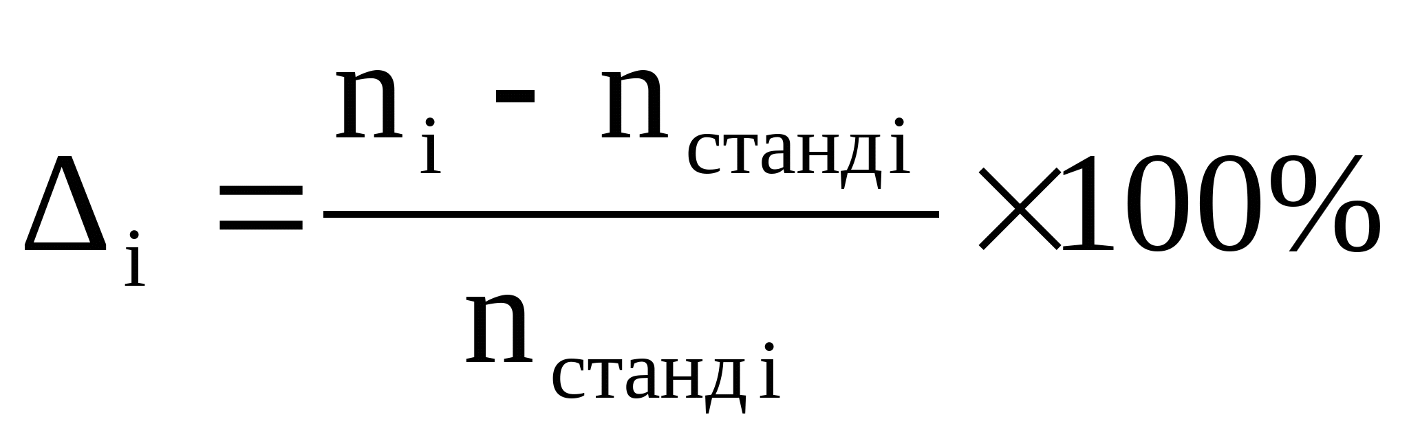 Сравниваем рассчитанные значения частот вращения шпинделя со стандартными значениями и величину отклонения между ними находим по формуле: