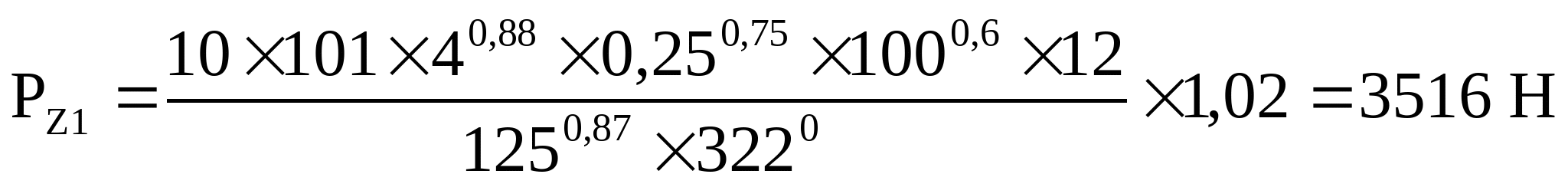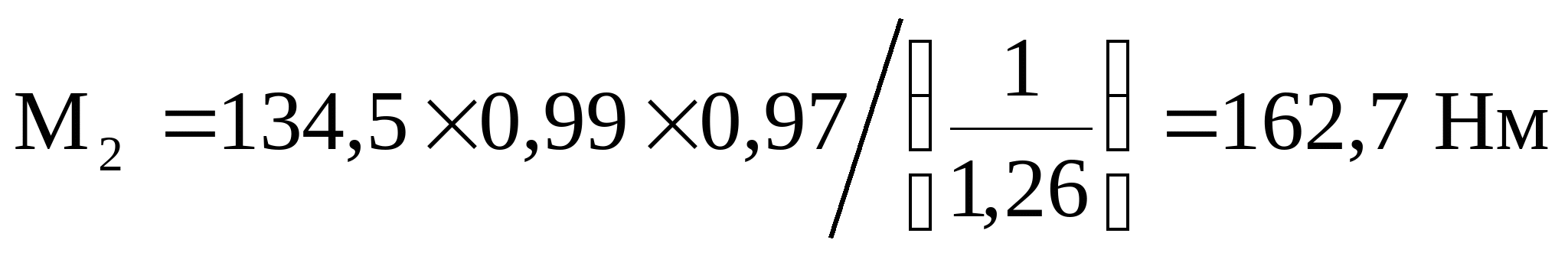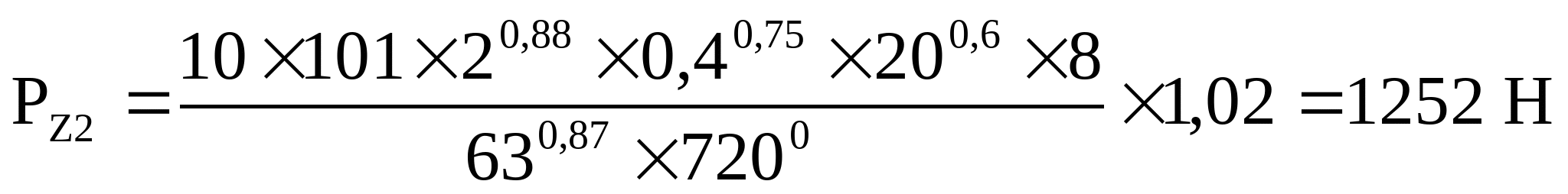 1 Расчет режимов резания и выбор электродвигателяСкорость резания при фрезеровании где где НВ -параметр, характеризующий обрабатываемый материал, НВ = 190; nV - показатель степени, nV = 1,25; По заданию Bmin = 40 мм. Bmax = (4ч8)Bmin = 160ч240 мм. Принимаем Bmax = 160 мм. При фрезеровании серого чугуна, марки СЧ20, принимаем глубину резания и подачу: при Bmax = 160 мм t = 4 мм, s = 0,3 мм/зуб; при Bmin = 40 мм t = 2 мм, s = 0,5 мм/зуб. Частота вращения фрезы: Сила резания при обработки заготовки определяется: где НВ -параметр, характеризующий обрабатываемый материал, НВ = 190 МПа; n - показатель степени, n = 1; Мощность при резании Для первого режима резания при ширине заготовки y = 0,47; u = 0,23; p = 0,14; q = 0,37: Частоту вращения фрезы вычисляем по формуле (1.4): Силу резания вычисляем по формуле (1.5) ,приняв по [1] x = 0,9; y = 0,8; u = 0,65; q = 0,9; w = 0: Мощность резания вычисляем по формуле (1.7): Для второго режима резания при ширине заготовки y = 0,47; u = 0,23; p = 0,14; q = 0,37: Силу резания вычисляем по формуле (1.5) ,приняв по [1] x = 0,9; y = 0,8; u = 0,65; q = 0,9; w = 0: Мощность резания вычисляем по формуле (1.7): При полученных расчетах получаем: Требуемая мощность двигателя: где Принимаем Выбираем электродвигатель асинхронный 4А 160М8 с мощностью Nдв = 11 кВт и синхронной частотой вращения nдв = 750 об/мин. Фрезерные станки предназначены для выполнения широкого круга операций. Они позволяют обрабатывать наружные и внутренние фасонные поверхности, порезать прямые и винтовые канавки, фрезеровать зубья зубчатых колес и т. д. Различают две основные группы фрезерных станков: универсальные и специализированные. К первым относятся горизонтально-фрезерные, вертикально- фрезерные и продольно-фрезерные станки, ко вторым – шпоночно-фрезерные, шлице-фрезерные, карусельно-фрезерные и другие станки. Основные технические характеристики вертикально-фрезерного консольного станка 6Р13: Габарит станка (длинаЧширинаЧвысота) …………………...2560Ч2260Ч2120 мм Вес станк…..………………………………………………………………… 4200 кгРазмеры рабочей поверхности стола (длинаЧширина) ……………. 1600Ч400 мм Наибольшие перемещения стола: продольное …………………………………………………………..1000 мм поперечное ……. …………………………………………………… 300 мм вертикальное………………………………………………………….. 420 мм Перемещение гильзы со шпинделем………………………………………… 80 мм Наибольший угол поворота шпиндельной головки…………………….. Подача стола: продольная и поперечная..………………………………… 25-1250 мм/мин вертикальная..…………………………………………….. 8,3-416,6 мм/мин Библиографический список1 Справочник технолога-машиностроителя – В 2-х т. Т.2/ под ред. А. Г. Косиловой и Р. К. Мещерякова – 4-е изд. перераб. и доп.- М: Машиностроение, 1985.- 656 с. ил. 2 Проников А.С. Расчет и конструирование металлорежущих станков.- М: Высшая школа, 1962.- 425 с. ил. 3 Курсовое проектирование деталей машин: Учеб. Пособие для учащихся техникумов/ С.А. Чернавский, К.Н. Набоков, И.М. Чернин и др.- 2-е изд. перераб. и доп.- М: Машиностроение, 1988.- 416 с. ил. 4 Динамический расчет коробки скоростейКрутящий момент двигателя: где Крутящие моменты на валах рассчитываем по следующим формулам: Крутящий момент на первом валу по формуле (4.2): Крутящий момент на втором валу по формуле (4.3): Крутящий момент на третьем валу по формуле (4.4): Крутящий момент на четвёртом валу по формуле (4.5): 4.1 Ориентировочный расчет валов Предварительный расчет проводим на кручение по допускаемым напряжениям: где 