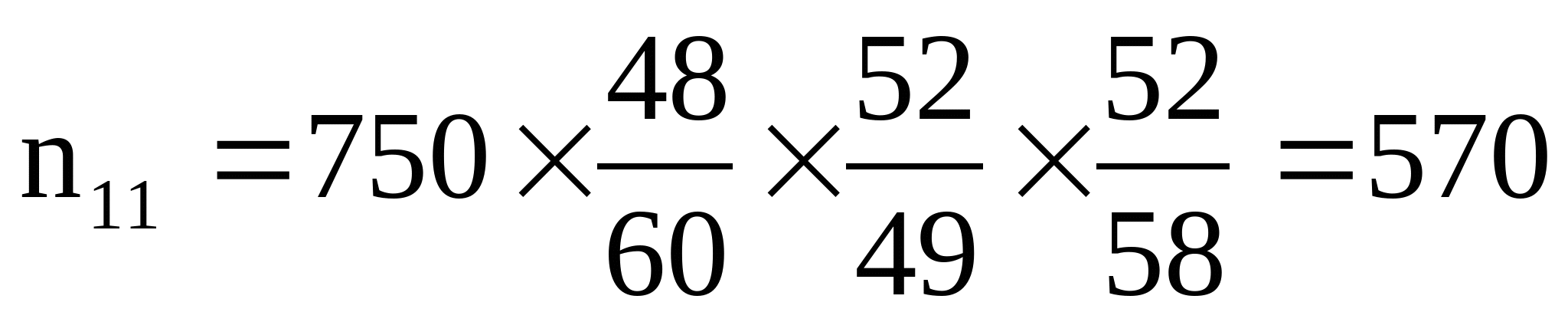 Э z1=56 z3=58 Рисунок 3 - Кинематическая схема коробки скоростей Полученные результаты сводим в таблицу 2. Таблица 2 – Сравнение частот вращения