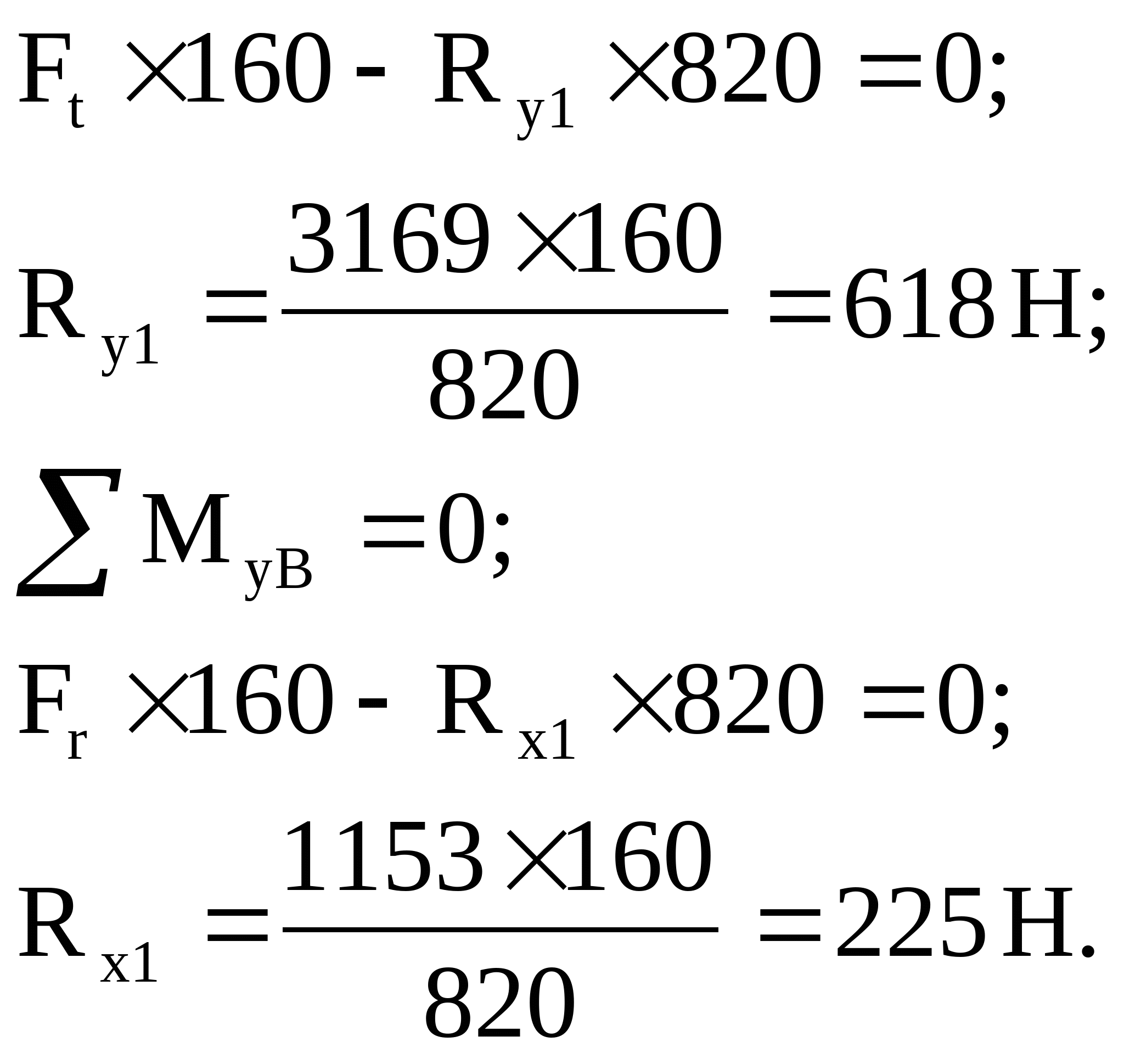 7 Техника безопасности при работе на станках фрезерной группы и смазка станка Современные станки являются мощными машинами, предназначеными для обработки металлов путем снятия стружки. Возможность получения травм при работе на станках обязывает применять специальные устройства и приспособления, обеспечивающие безопасную работ. Все вращающиеся части необходимо закрывать крышками и кожухами. Применять стружкоотводы и пылесборники, которые защищают рабочего от попадания в него мелкой стружки. Рабочий должен иметь специальную одежду и быть внимательным при работе на станке. Рабочее место должно иметь хорошее освещение в дневное и вечернее время суток. На рабочем месте нужно проверить убрана ли стружка со станка и пол, а так же удалить все лишние предметы. Проверить исправность предохранительных ограждений на станке, они должны быть надежно закреплены. Категорически запрещается снимать ограждения во время работы станка. Перед пуском станка проверить исправность электрооборудования. Обрабатываемая деталь и режущий инструмент должны быть надежно закреплены. Держать деталь руками запрещается. Не разрешается измерять деталь во время работы станка. Нельзя удалять стружку руками. Смазка зубчатых колес осуществляется разбрызгиванием индустриаль- ного масла И-30, которое заливается в корпус коробки скоростей. Обьем маслянной ванны определяем из расчета 0,25 Подшипники смазываем пластичным смазочным материалом УС-2, закладываемом при монтаже. 4 Динамический расчет коробки скоростейКрутящий момент двигателя: где Крутящие моменты на валах рассчитываем по следующим формулам: Крутящий момент на первом валу по формуле (4.2): Крутящий момент на втором валу по формуле (4.3): Крутящий момент на третьем валу по формуле (4.4): Крутящий момент на четвёртом валу по формуле (4.5): 4.1 Ориентировочный расчет валов Предварительный расчет проводим на кручение по допускаемым напряжениям: где Диаметр первого вала по формуле (4.6): Диаметр второго вала по формуле (4.6): Диаметр четвёртого вала по формуле (4.6): 4.2 Уточненный расчет валов Уточнённый расчет проводим для наиболее нагруженного вала (с наибольшим крутящим моментом). Выбираем колесо с наименьшим диаметром на этом валу и для него строим эпюры моментов, которые возникают при вращении. Окружное усилие, возникающее в зацеплении: где Для четвертого вала, на котором Радиальное усилие: где