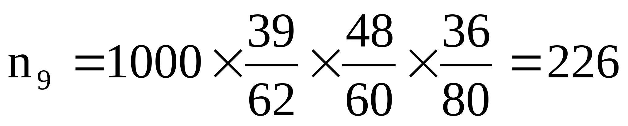 вращения каждого вала. Структурная сетка представлена на рисунке 1, график чисел оборотов на рисунке 2. i7 i6 i5 i4 IV 1 2 3 4 5 6 7 8 9 10 11 12 13 14 15 16 17 18 Рисунок 1- Структурная сетка 3Ч4Ч2 i3 i1 i2 i7 i5 i4 i9 i6 i9 i8 IV n nдв Рисунок 2 –График чисел оборотовПо структурной сетке определяем значения передаточных отношений: Определяем числа зубьев в каждом зацеплении по значениям передаточных отношений и сводим в таблицу 1. Таблица 1-Числа зубьев в каждом зацеплении