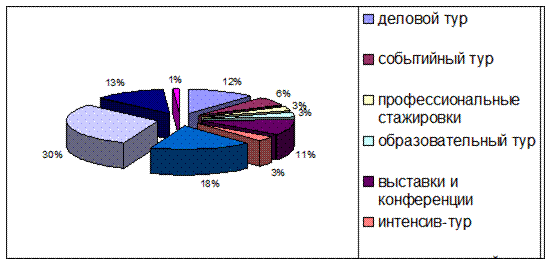 Рисунок 1 – Структура деятельности фирмы На рисунке 2 представлена структура видов туризма, предоставленных бюро «Альянс-Тур» для своим клиентам в 2009 году.
