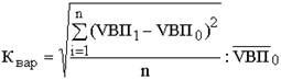 коэффициент вариации (Квар) определяется как отношение среднеквадратичного отклонения от плановых заданий (за сутки, декаду, месяц и т.д.) к среднесуточному (среднедекадному, среднемесячному и т.д) плановому выпуску (