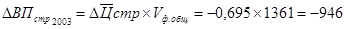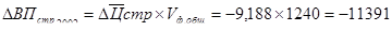 Суммарное влияние факторов на отклонение объема товарной продукции от прошлого года: