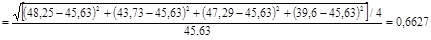 Анализируя ритмичность производства продукции в 2007 году, отметим, что план по ритмичности недовыполнен на 2%. В первом и третьем квартале наблюдалось перевыполнение плана на 0,57% и 0,36% соответственно, а во втором и четвертом квартале план по ритмичности недовыполнялся на 4,2% и 13,2%. Критм2007 = Анализируя ритмичность производства продукции в 2008 году, отметим, что план по ритмичности перевыполнен на 0,86%. Только в первом квартале наблюдалось недовыполнение плана на 0,01%, а со второго по четвертый квартал план по ритмичности перевыполнялся. Критм2008 = На основании формулы (12) Коэффициент вариации (Кв) К2006= Таблица 28 Ритмичность выпуска товарной продукции ООО «Тандем» по кварталам за 2008 г.