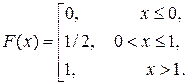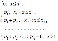 Рисунок 1 У відповідності з її визначенням, вона дає в точці x ймовірність того, що випадкова величина розташована на осі Ox зліва від цієї точки x. Зокрема, для випадкової величини, заданої законом розподілу в табл. 2, ця функція має складний вигляд із різними представленнями на різних інтервалах