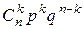 де Відповідний цїй формулі закон розподілу випадкової величини називається біноміальним, тому що його коефіцієнти збігаються з коефіцієнтами членів розкладання бінома Ньютона (p+q)n (табл. 4). Таблиця 4