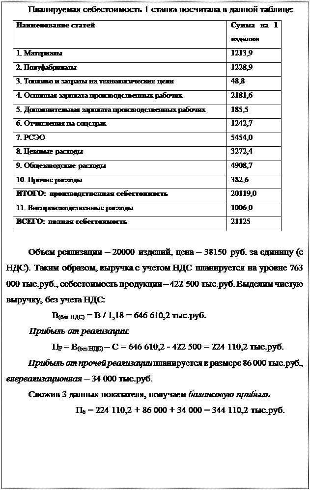 Все рассчитанные данные вводим в итоговую таблицу Баланса доходов и расходов предприятия (финансовый план). Показатели рассчитаны в ценах предшествующего года; для их перевода в цены планового года их необходимо умножить на прогнозируемый индекс инфляции. У нас он взят равным 1,12. Баланс доходов и расходов по предприятию