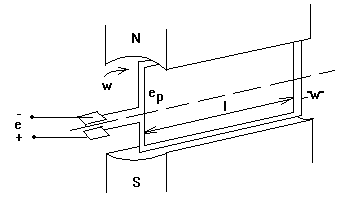 Рисунок 5. Вид одной обмотки коллекторного двигателя постоянного тока Ток, протекая по обмотке, находящейся в магнитном поле, наводит в ней ЭДС, которая старается провернуть рамку. Направление этой силы определяется по правилу правой руки. Чтобы во внешней цепи ток протекал в одном направлении, он должен быть выпрямлен. Для этого служит специальный электромеханический выпрямитель – коллектор, расположенный на валу машины. В простейшем случае используют две пластины с наложенными на них щетками. Последние так должны быть расположены в пространстве, чтобы коммутация происходила в моменты периода ЭДС через ноль. С увеличением количества рамок (секций) и соответственно пластин коллектора пульсации уменьшаются. При восьми коллекторных пластинах пульсация напряжения на щетках не превышает 1% от среднего, поэтому ток, протекающий во внешней цепи, можно считать практически постоянным. Коллекторный двигатель постоянного тока обычно управляется при помощи Н-моста, позволяющего задавать направление вращения: