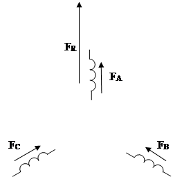 Рисунок 7. Положение ротора в начальный момент времени Затем происходит смена токов в обмотке и FR изменяет свое направление. Ротор продолжает свое вращение, стремясь совместиться с результирующим вектором.