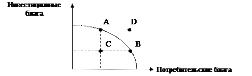 5. Рассмотрите представленную кривую производственных возможностей: Какой экономический смысл имеют: 1) точки А, В, С, Д; 2) движение от А к В; от В к С; от С к А; от А к Д. Ответ: