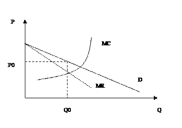 вообще. Если совершенный конкурент в этих расчётах использует рыночную цену, то монополист пользуется предельным доходом. На рис. показаны кривая спроса в и кривая предельного дохода MR . На рисунке изображена также кривая предельных издержек фирмы (MC Находясь в этой точке, фирма не имеет стимулов ни увеличивать объем выпуска, ни уменьшать его, т.е. находится в состоянии равновесия . Любое отклонение от этой точки приводит к потерям фирмы в виде прямых убытков при объеме, большем, чем М , либо в результате уменьшения массы прибыли при выпуске, меньшем, чем М . Чтобы максимизировать свою прибыль, монополист придерживается такого же рода двухшаговой процедуры, что и совершенно конкурентная фирма. На первом шаге фирмы обоих типов рассчитывают величину оптимального положительного выпуска, который позволяет максимизировать прибыль, при условии, что фирма производит что-либо). Для монополиста, как и для любой фирмы, MC показывает величину прироста совокупных издержек фирмы в том случае, когда она увеличивает выпуск продукции на одну единицу. Если монополист решает производить что-либо, то он установит цену так, чтобы объём спроса равнялся его оптимальному положительному объёму выпуска. Поскольку предельные издержки равны предельному доходу при оптимальном положительном объёме выпуска, а предельный доход ниже цены, то из этого следует, что данная цена будет выше предельных издержек. Таким образом, если монополист решает производить что-либо, то он максимизирует прибыль, поднимая цену выше уровня предельных издержек.
