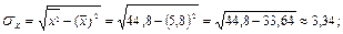 Среднее квадратическое отклонение определяется как квадратный корень из дисперсии и имеет ту же размеренность, что и изучаемый признак: