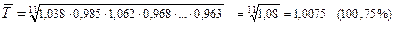 Для этого показатели графы 4, выраженные в процентах, переведем в коэффициенты, подставив в формулу (1.10.7), получим: