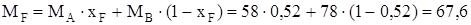 где МА и МB – мольные массы ацетона и бензола, соответственно, кг/моль. МА = 58 кг/моль; МB = 78 кг/моль