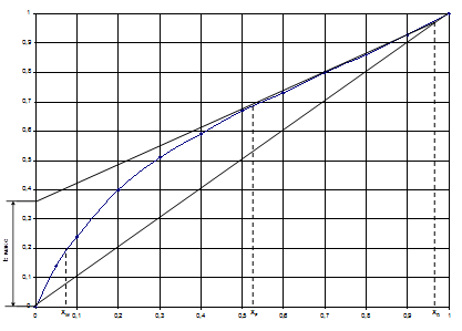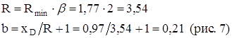Рис. 2 Кривая равновесия и положение рабочей линии при Rмин