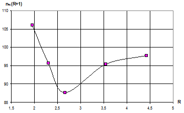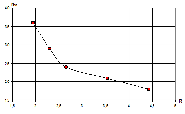 Рис. 9 Зависимость числа теоретических ступеней от флегмового числа