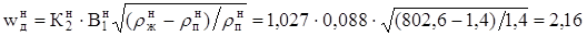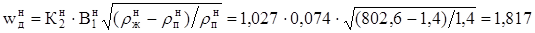 Скорость жидкости в переливных устройствах верхних тарелок: